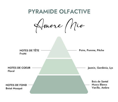 En fond, les muscs blancs ajoutent une touche musquée et enveloppante, créant une ambiance sereine et chaleureuse.